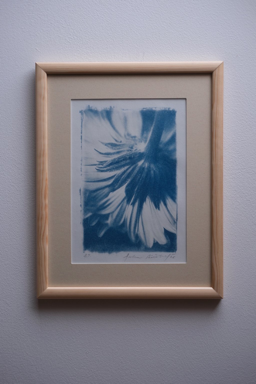 Autorský tisk MĚSÍČEK, s krémovou paspartou, v přírodním dřevěném rámu, s antireflexním sklem.