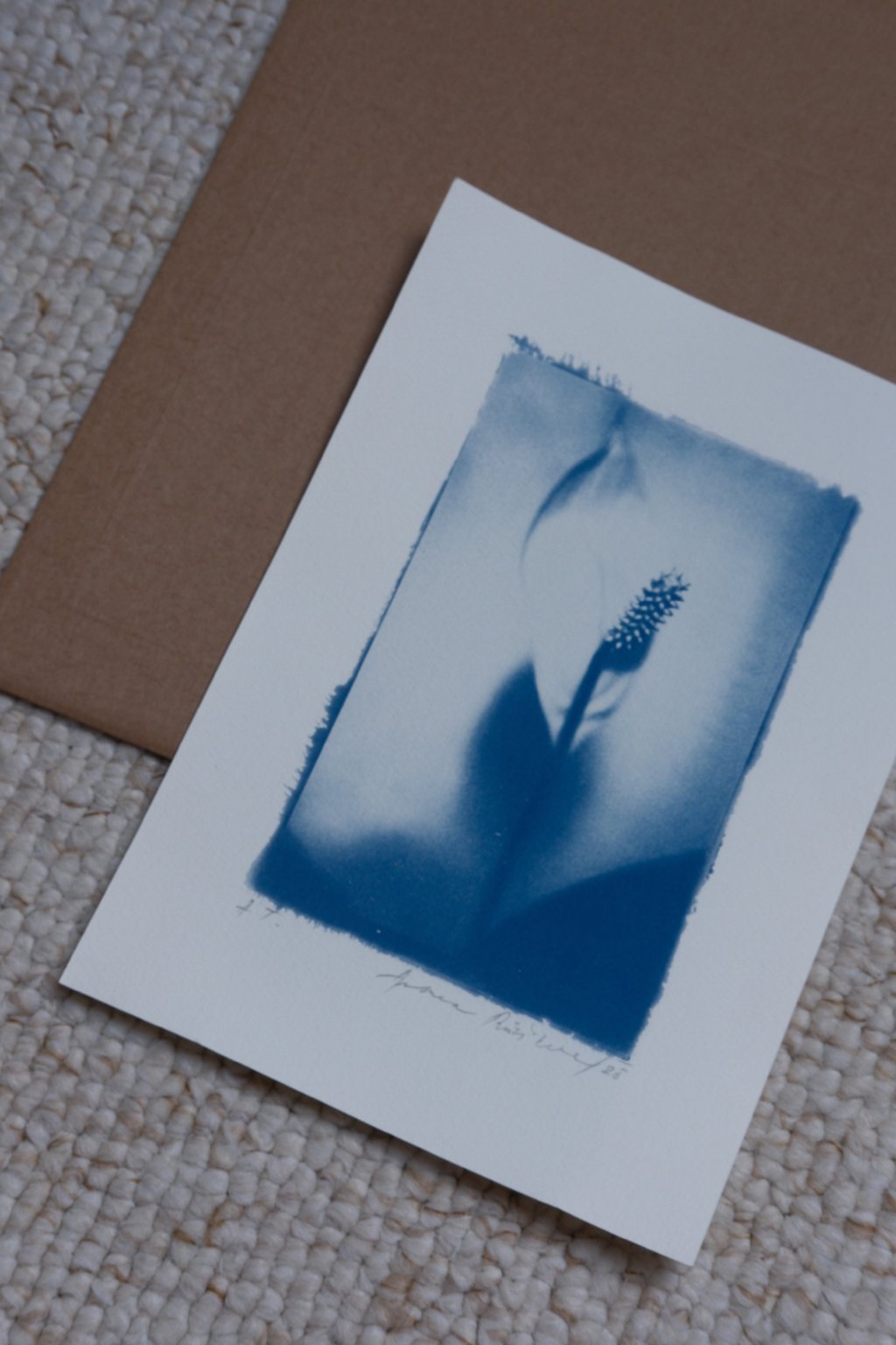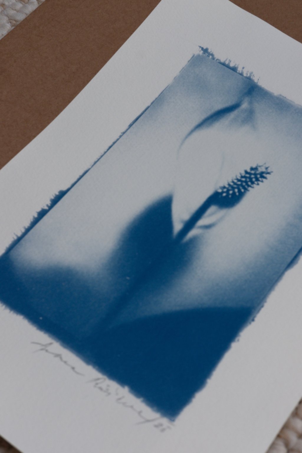 kyanotypie - autorský tisk, jemně tónovaný černou kávou