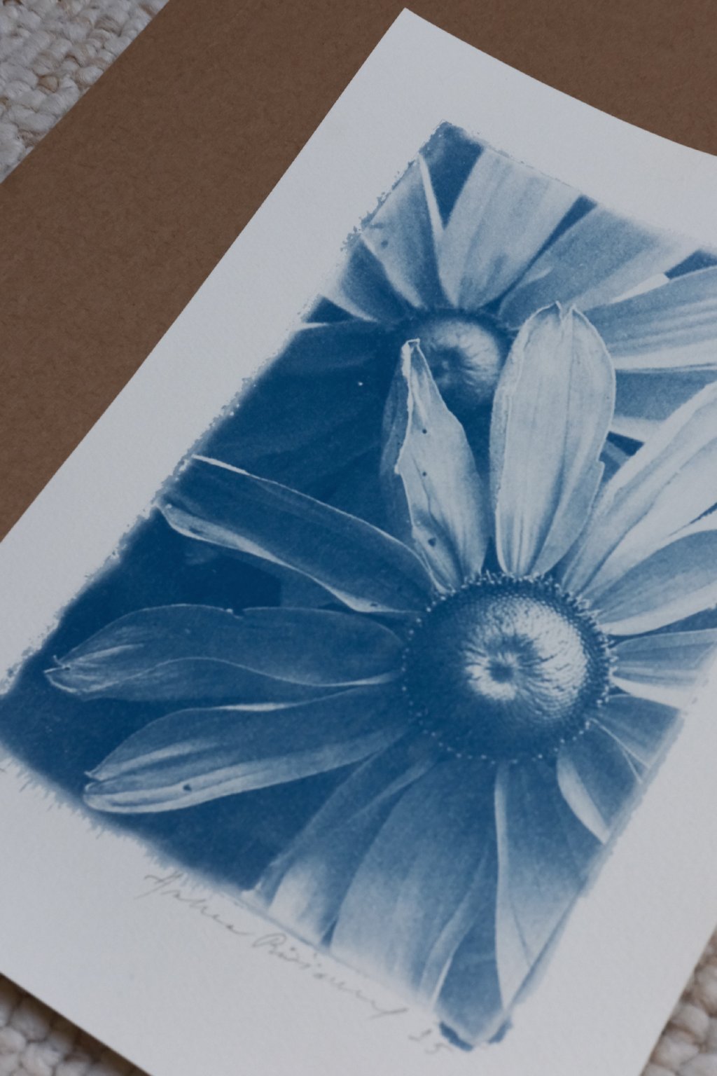 kyanotypie - autorský tisk, jemně tónovaná černou kávou