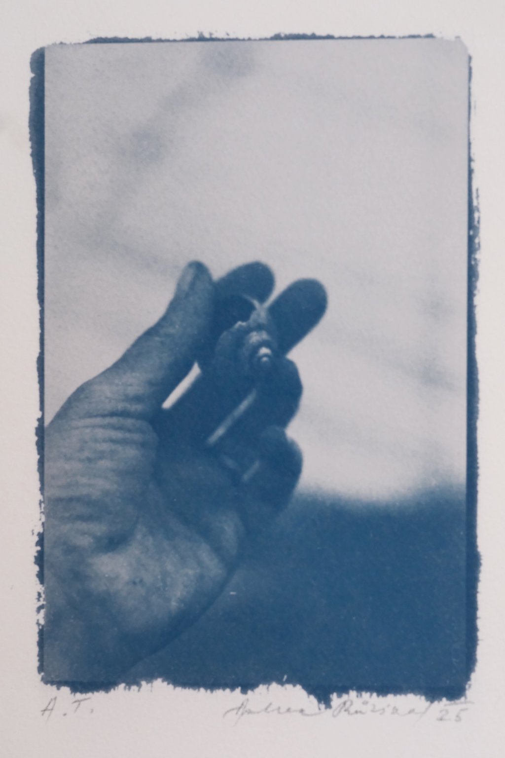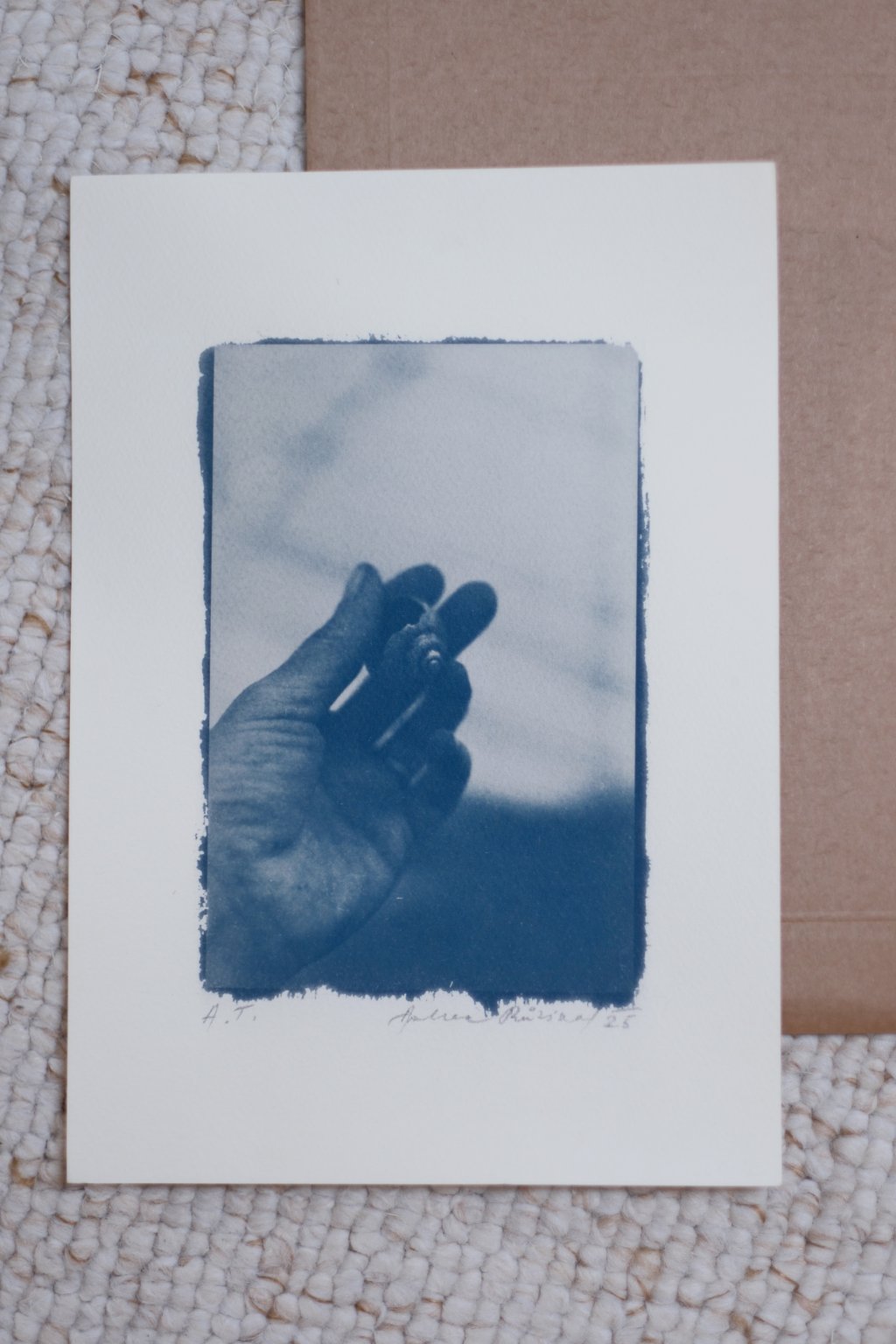 kyanotypie - autorský tisk, jemně tónovaný černou kávou